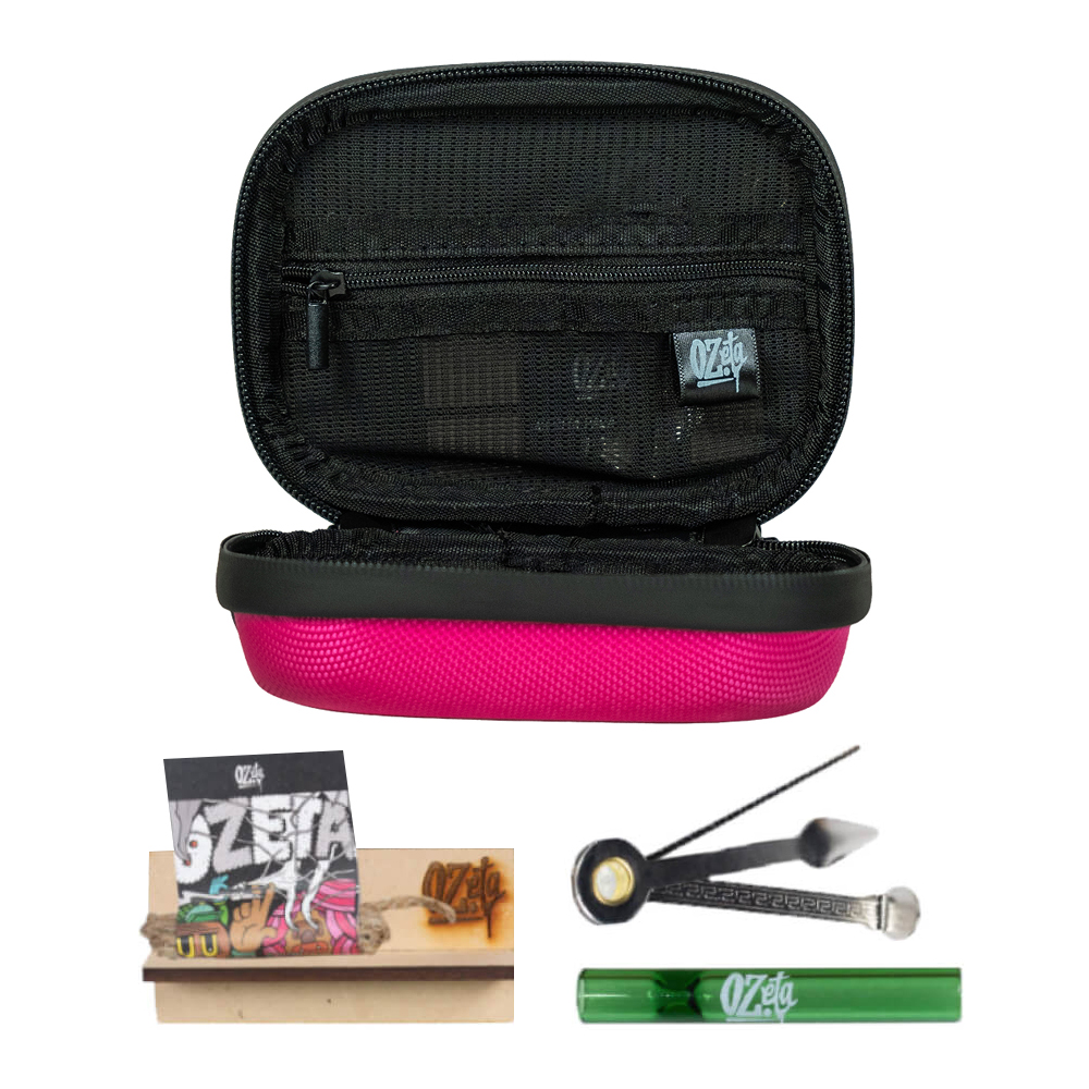 - Estuche OZeta Rosado Mediano: Equipado con Tecnología CDO (Control de Olores), filtro de carbón activado y cierre hermético para evitar filtraciones de olor y proteger tus accesorios.