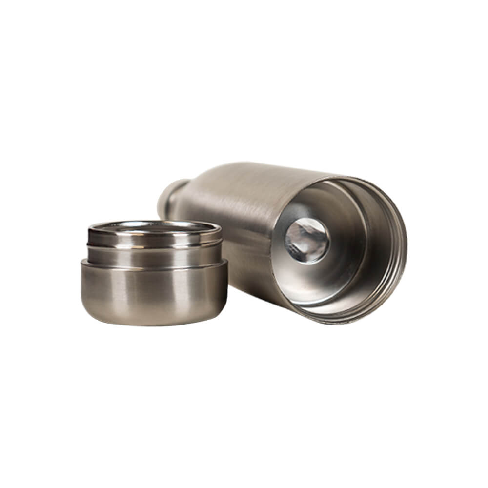 Esta botella no está diseñada para almacenar líquidos, sino que su función principal es actuar como contenedor de almacenamiento secreto dentro de un objeto cotidiano. Su peso, material y terminaciones están pensadas para que pase 100% desapercibida.