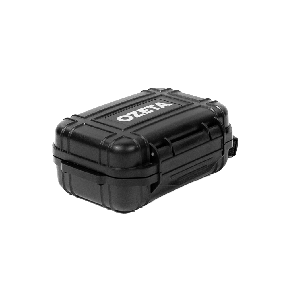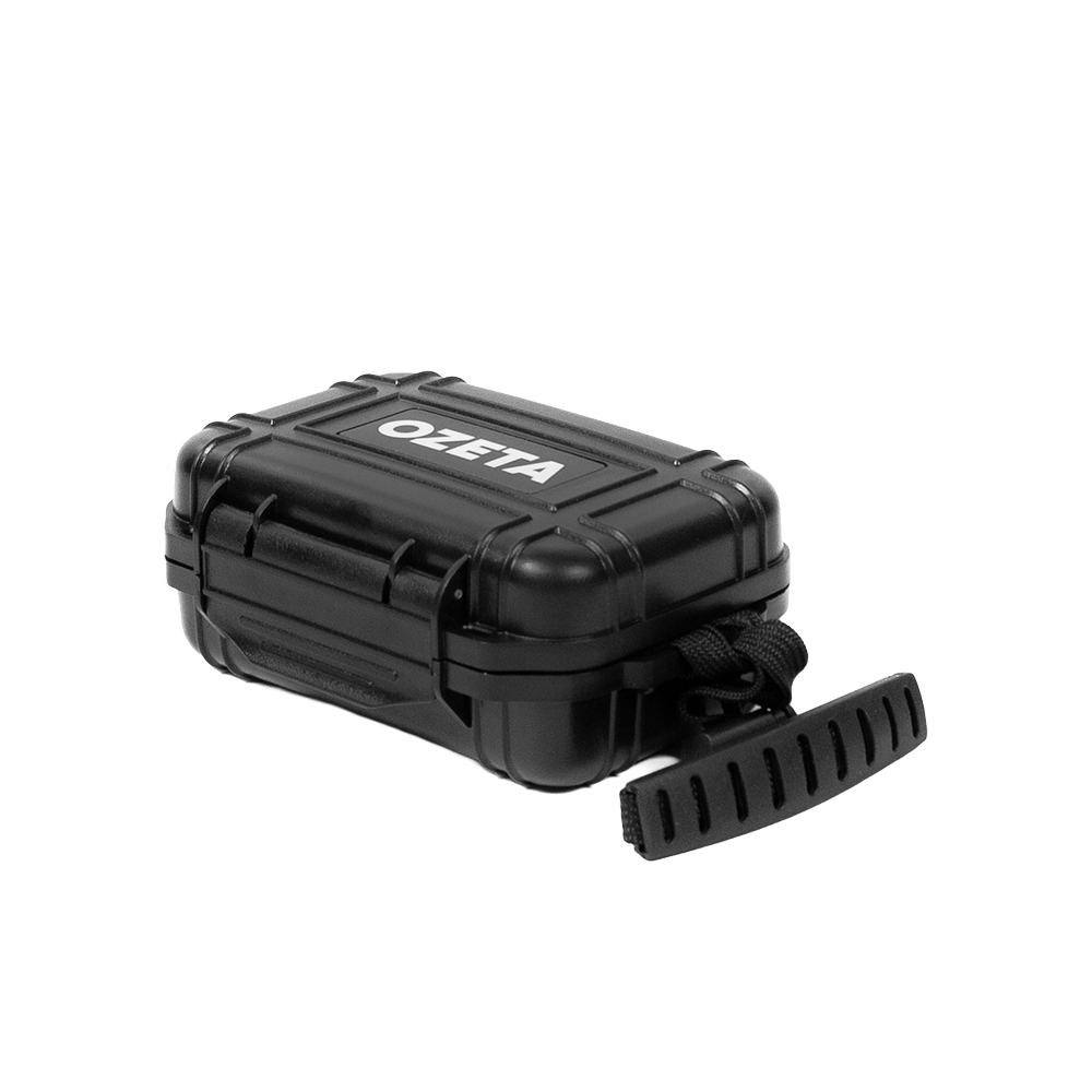 El Hard Case OZeta Pequeño es compacto, resistente y ultra seguro. Fabricado con plástico rígido, este estuche no se deforma ni se rompe fácilmente. Su cierre hermético con oring garantiza máxima discreción y protección frente al agua, polvo y olores.